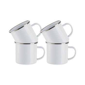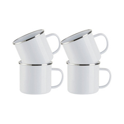 Becher 360 ml, Metall, emailliert, weiß, 4 Stück, satiniert, für den Sublimationsdruck