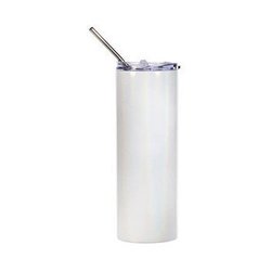 Tumbler-Becher, 600 ml, mit Trinkhalm, Weiß schillernd, für den Sublimationsdruck.