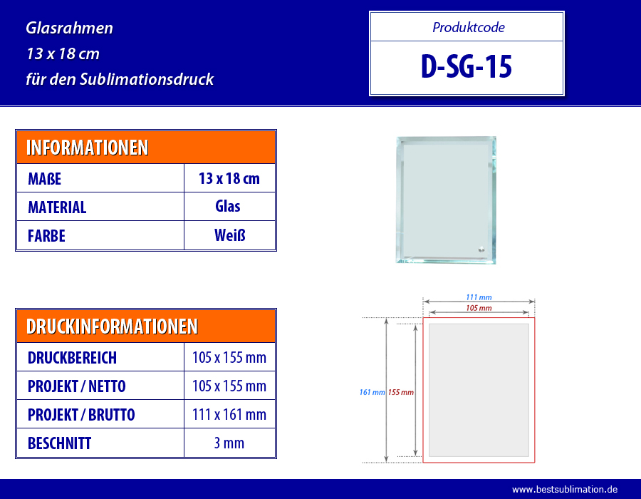 - Blanker Glasrahmen für den Sublimationsdruck