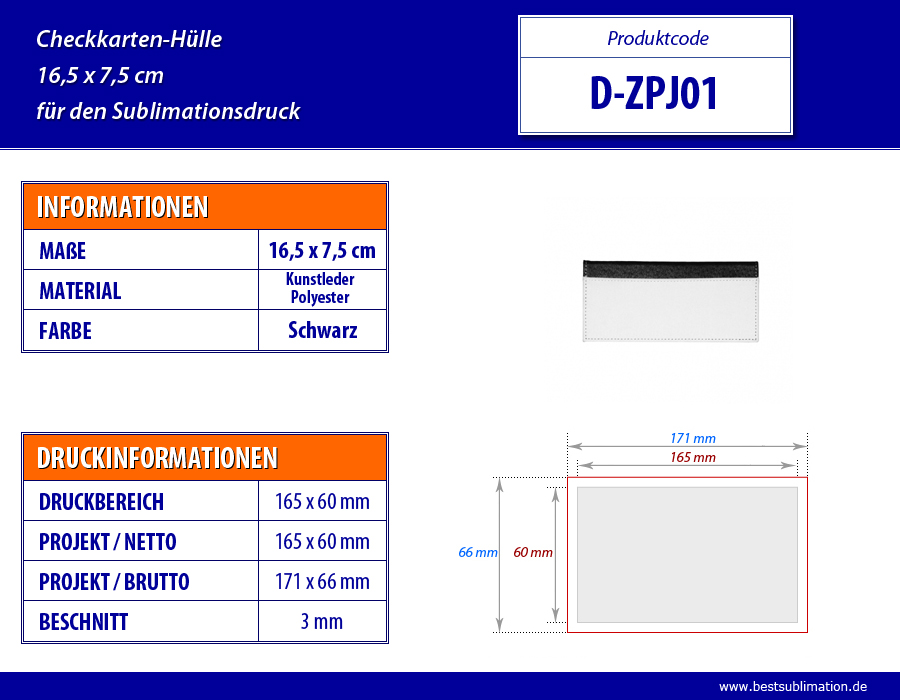 Checkkarten-Hülle, bedruckbar mittels Sublimationsverfahren. Mit mehreren Fächern für diverse Karten.