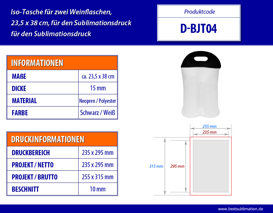 Iso-Tasche für zwei Weinflaschen, bedruckbar mittels Sublimationsverfahren. Die Tasche hilft die Temperatur der Weine zu erhalten und schützt die Flaschen vor Beschädigung.
