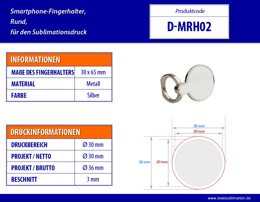Silberfarbener Fingerhalter für Smartphones, bedruckbar mittels Sublimationsverfahren. Der Aufdruck erfolgt auf die mitgelieferte Metallplatte, welche anschließend auf die ausgefräste Stelle des Halters geklebt wird. Der Halter wird in einer eleganten, mit schwarzem Samt ausgeschlagenen Verpackung geliefert. Ideal als Geschenk.
