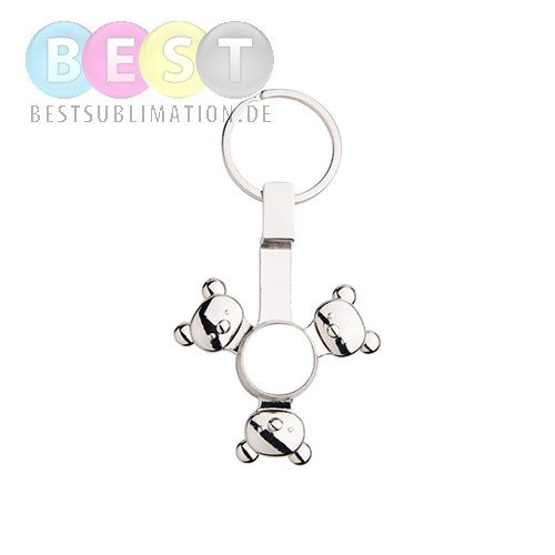Schlüsselanhänger aus Metall, bedruckbar mittels Sublimationsverfahren. Der Aufdruck erfolgt auf eine dem Anhänger beiliegende Metallplatte, welche anschließend auf die ausgefräßte Stelle des Anhängers geklebt wird. Der Anhänger kommt in einer, innen mit schwarzem Samt ausgearbeiteten, dekorativen Schachtel.