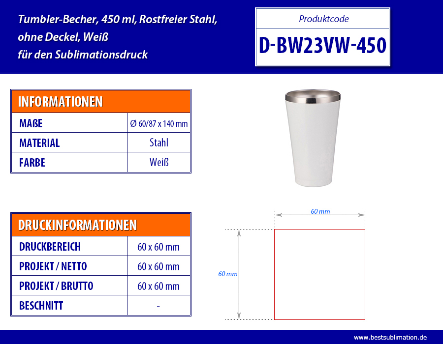 - Blanker Tumbler-Becher für den Sublimationsdruck.