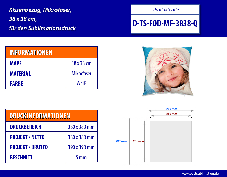 Kissenbezug aus Mikrofaser für den Sublimationsdruck. Wir führen passende Füllungen in unserem Sortiment.
