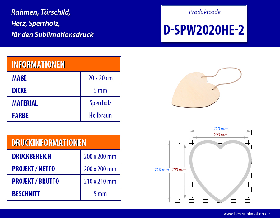 Türschild zum aufhängen aus Sperrholz für den Sublimationsdruck.