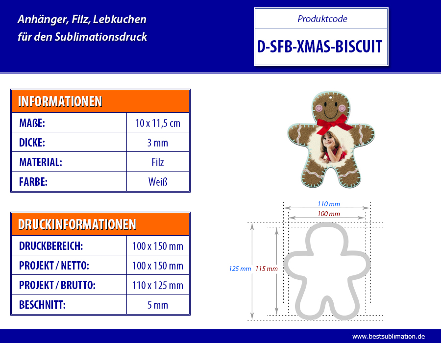 Anhänger, Filz, Lebkuchen, für den Sublimationsdruck