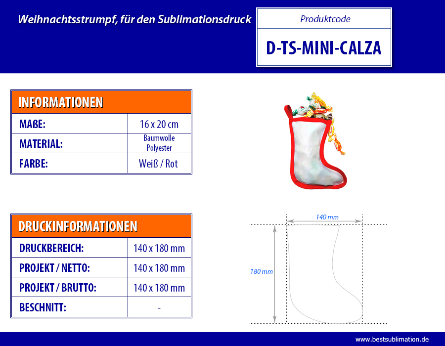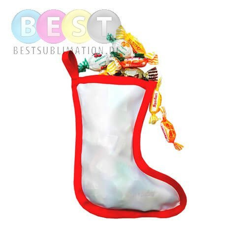 Zweifarbiger, kleiner Weihnachtsstrumpf für den Sublimationsdruck. Mit Aufhänger.