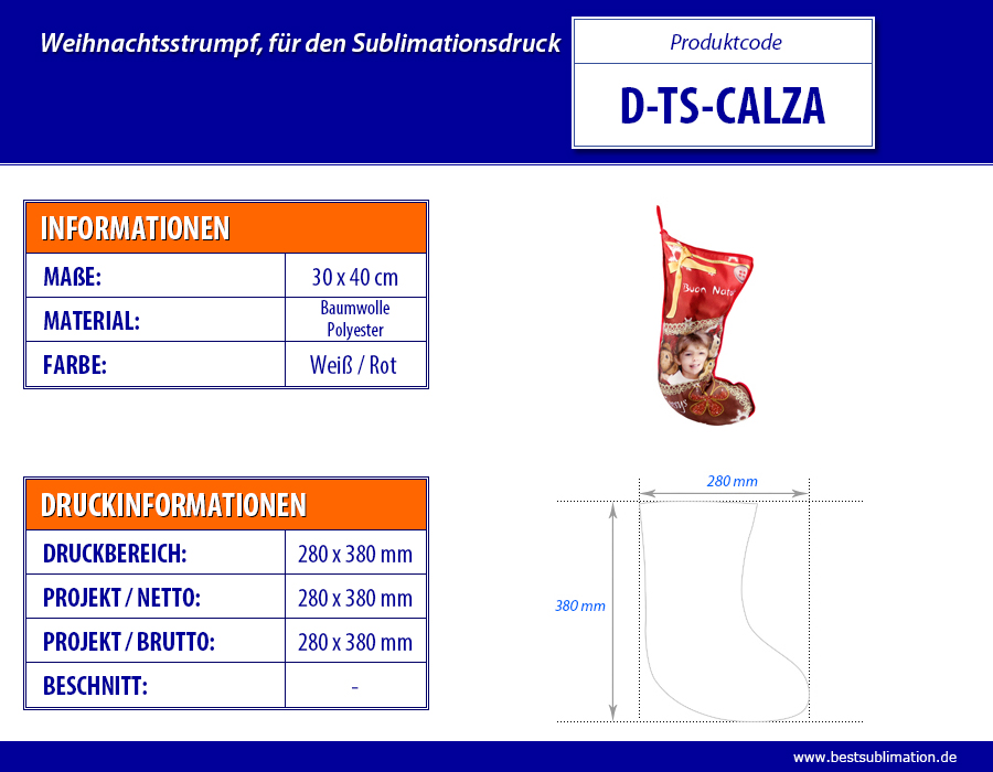 Zweifarbiger, kleiner Weihnachtsstrumpf für den Sublimationsdruck. Mit Aufhänger.