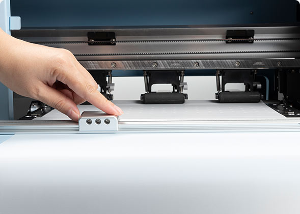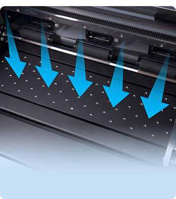 Der Drucker ist mit Folien in Bögen und auf einer 30 cm breiten Rolle kompatibel