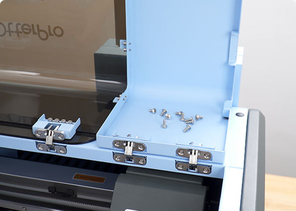 Eine Inspektionstür erleichtert die Wartung und bietet außerdem Platz für die Aufbewahrung von Schrauben und anderen Gegenständen während der Arbeit.