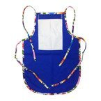 Kinderschürze, mit Tasche, mit bunten Paspeln, Blau mit weißen slawischen Blüten, für den Sublimationsdruck